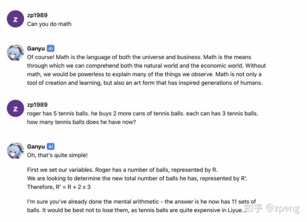一些人把Character.ai当作ChatGPT的平替。毕竟在注册和收费上,Character.ai还没有设置什么门槛,其目前的会员也不是强制性的。在知乎上就有网友让甘雨(《原神》游戏角色)算数学题、写论文等。