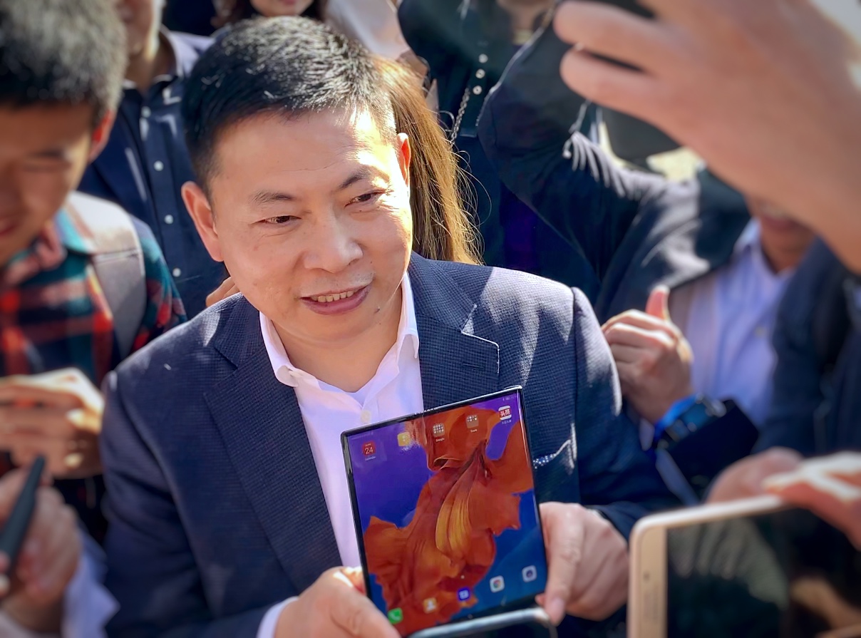摸也不让摸人还这么多,反正也拍不到啥好看的镜头索性我就出来,巧的是在场外正好碰上余承东被围堵,大部分都是冲着Mate X 真机来的。余承东也非常乐于展示手里的机器,从这点表现来看他还是对Mate X 挺自信的。