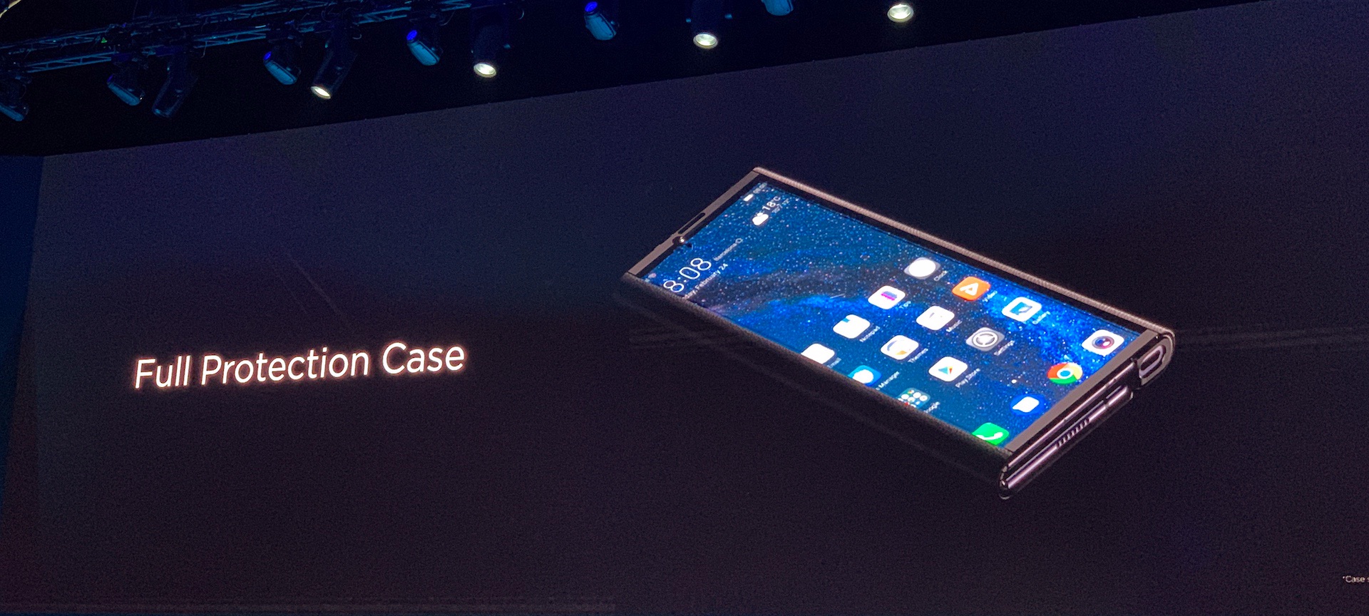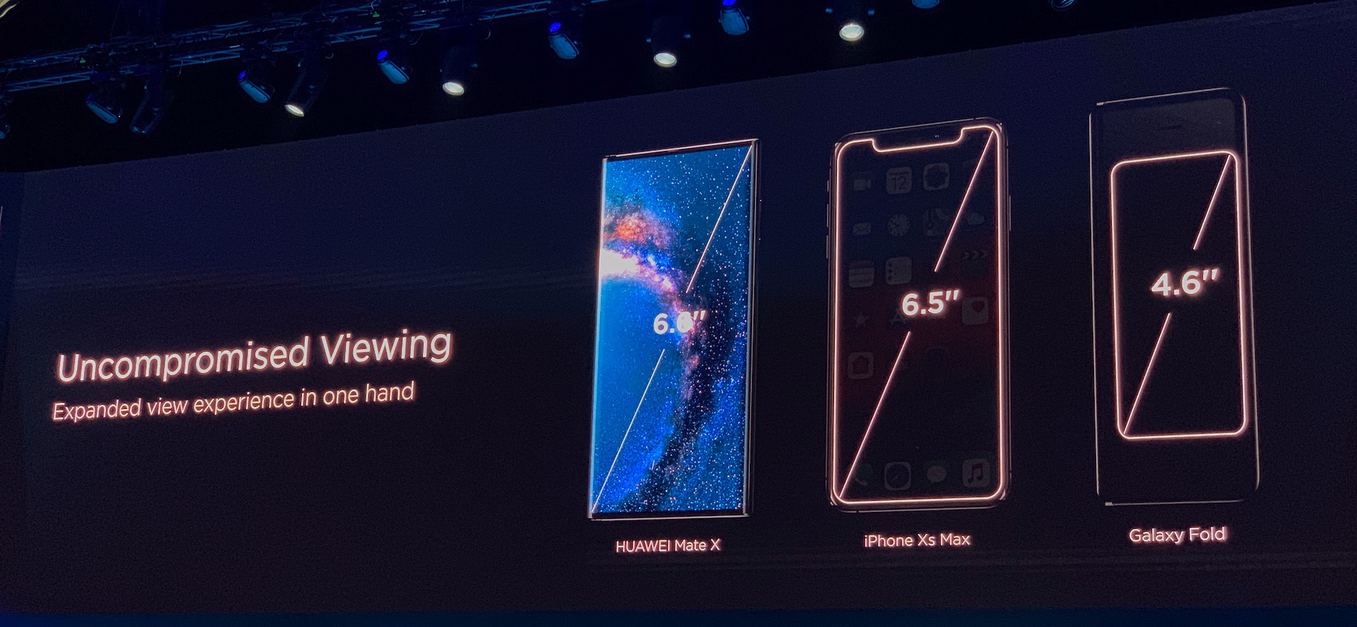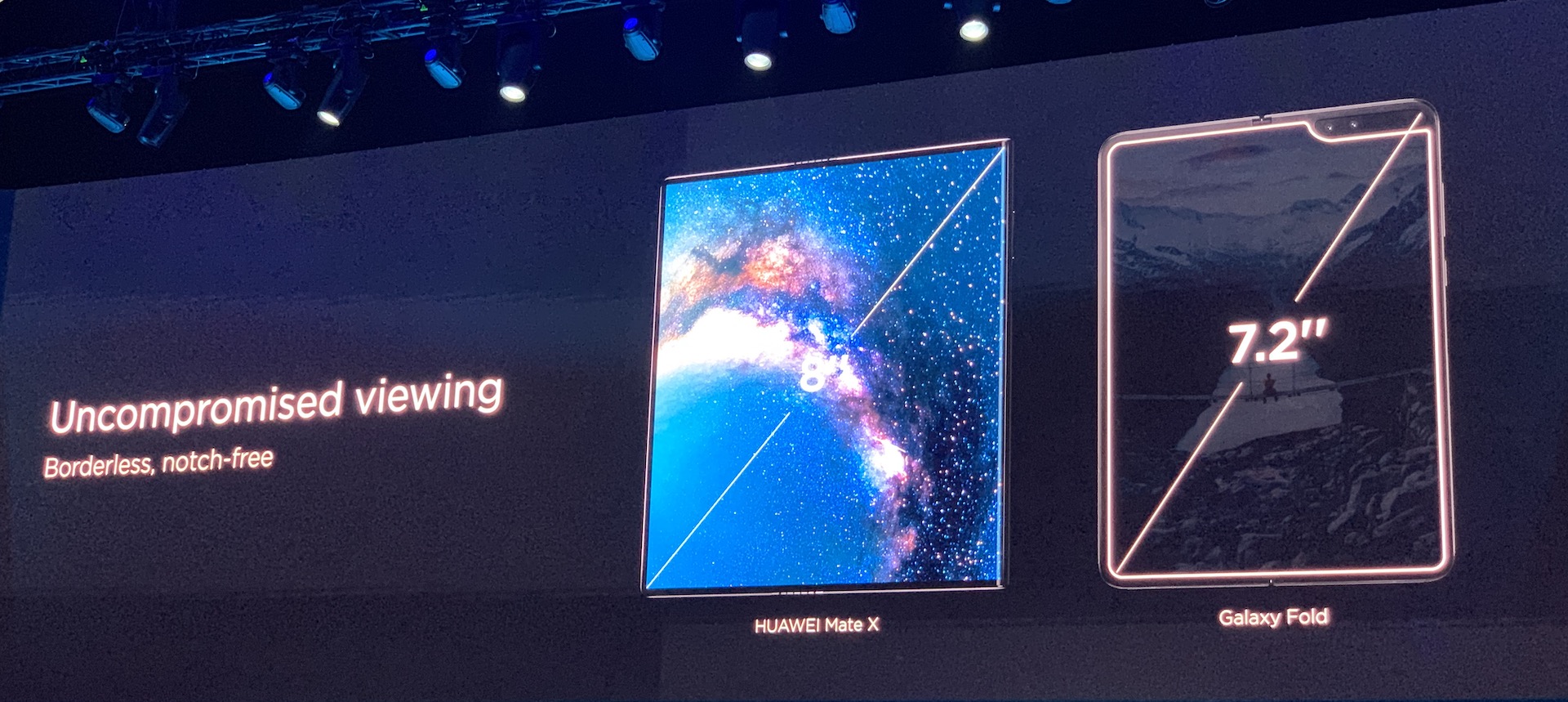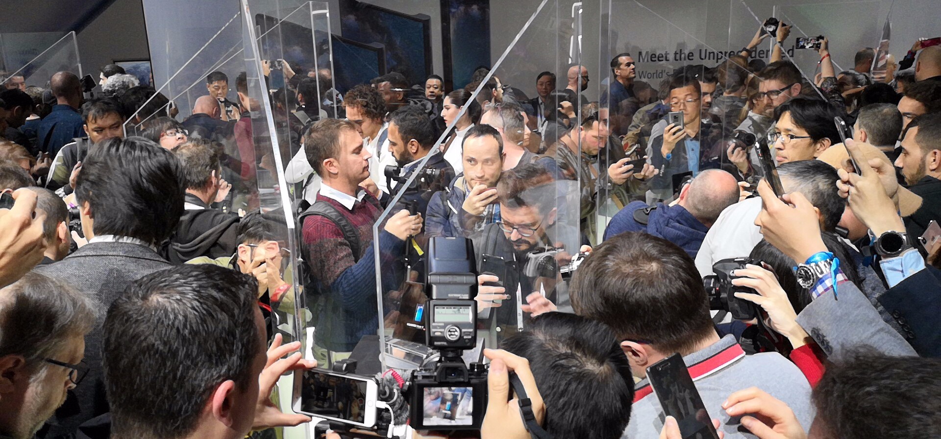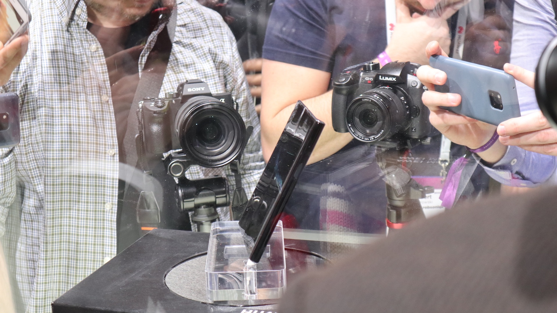 在PPT 感受完Mate X 之后,我又在一百个同行的挤压中隔着玻璃柜长焦拍了真机。