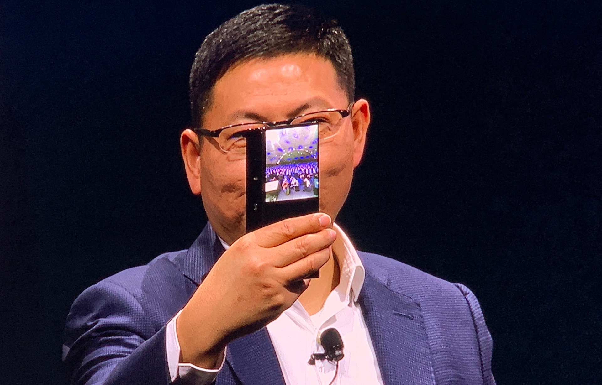 余承东现场演示了这项功能,并且是以竖拍的方式,这里我发现两个细节:1、被手遮住的地方黑屏;2、后置三摄中有一枚超广角。