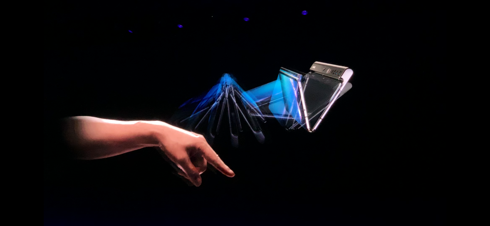 本来还纠结是留在体验区还是专访何刚,没想到何刚手上也有一台真机,并在专访提问前进行了一番操作演示。对折后Mate X 会自动切换到A 面单屏显示模式,翻转手机会感应切换到D 面显示。