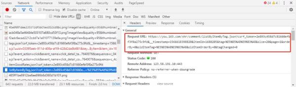 可以发现,评论文字是通过 listByItemByTag.json 传递过来的,点击进入该请求,并拷贝出该请求的 URL: