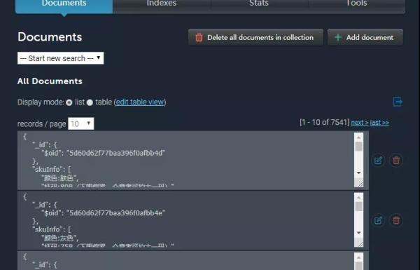 { "skuInfo": [ "颜色:肤色", "杯码:75B" ], "frontUserName": "1****8", "frontUserAvatar": "https://yanxuan.nosdn.127.net/f8f20a77db47b8c66c531c14c8b38ee7.jpg", "content": "质量好,穿着舒服", "createTime": 1555546727635, "picList": [ "https://yanxuan.nosdn.127.net/742f28186d805571e4b3f28faa412941.jpg" ], "commentReplyVO": null, "memberLevel": 4, "appendCommentVO": null, "star": 5, "itemId": 1680205 }对于 MongoDB,我们既可以自己搭建,也可以使用网上免费的服务。在这里我介绍一个免费的 MongoDB 服务网站:mlab,使用很简单,就不过多介绍使用过程了。