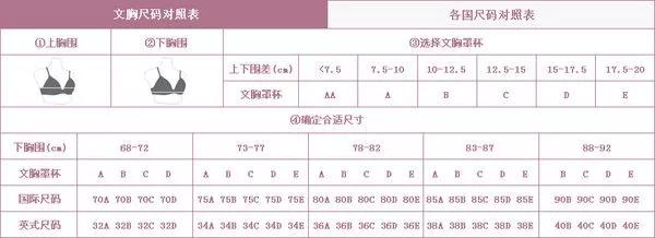 如果你对这种罩杯尺寸没有研究的话,不要紧,贴心的我给你准备了对照表,拿走不谢!